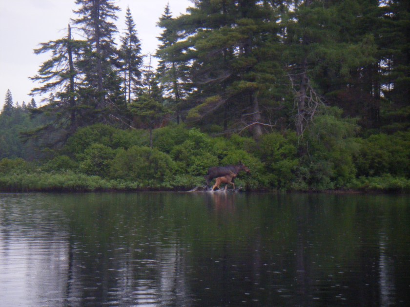 On our last day at the park I woke up around 5:30am. I looked out at the lake and saw lots of tiny circles quickly forming on the surface. It was raining, but not raining hard enough to stop me from taking the canoe out for one final paddle. My hunnie was still asleep, but I figured it was best to let her be. I was wrong. I paddled out less than a mile and then I saw two shadows through the rain and fog. I paddled closer and the shadows came into focus—a moose; two of them, a cow and her calf. They darted across the lake like race horses when they saw me.