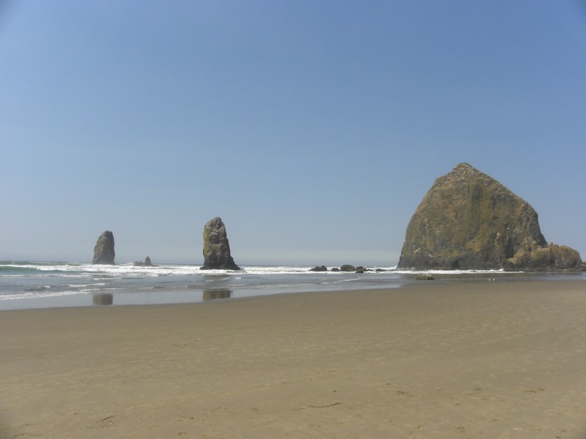 Sleepy Monk Coffee Roasters was highlighted on our map as a “must visit” coffee spot during our Pacific Northwest road trip. Apparently, the coffee shop only operates a few days a week. That day was not one of those days. We drove off long-faced to find a piece of coastline where we could sulk for a few minutes and we found Cannon Beach (painted above and pictured below).