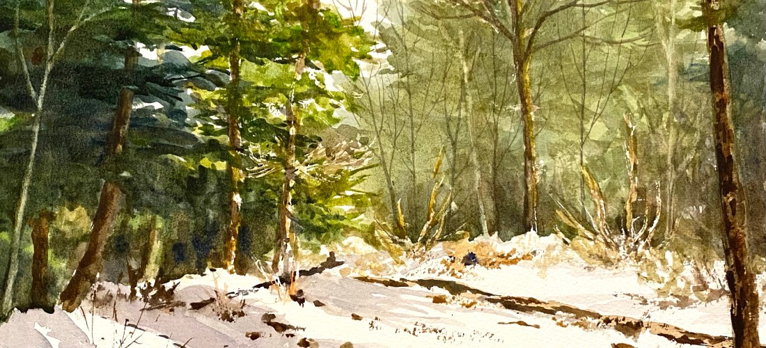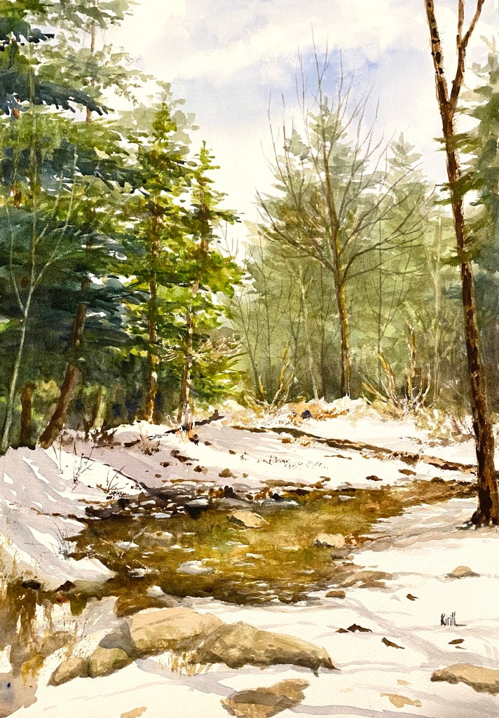 In the reference photo above, there is quite a bit going on – rocks, sticks, logs, water, trees, and more rocks. It can be easy to get lost in all the details. The challenge will be to combine all the smaller objects into bigger objects when painting this scene. A value study would surely come in handy here, but I’ve impatiently jumped right into the main painting. How will the painting turn out? Tune in to find out via the link below!