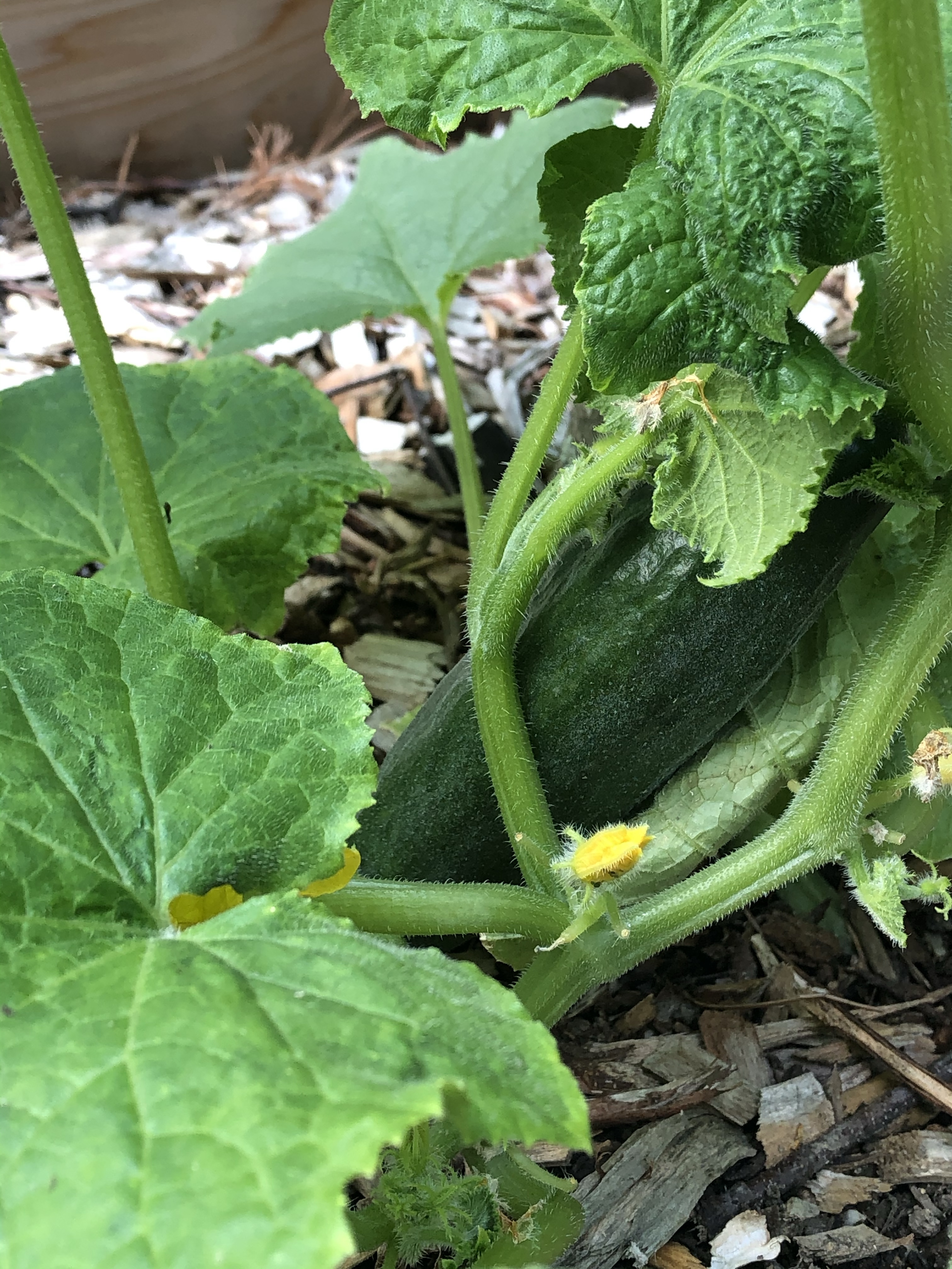 In the 1st year of this project, I built several raised beds and supplemented most of the remaining open space with large growbags. 3 out of 5 raised beds contain “teepee trellises” – a cost-free way to grow vegetable producing vines vertically by tying together 3 or 4 sturdy dead branches. In addition, I used twine to create little step ladders to help the plants climb. These beds would be used to grow cucumbers, pole beans, and butternut squash (I also snuck a few zucchini plants in there). The cucumbers were a big success, but I’m still not sure about the pole beans and butternut squash. I’ll make that call at the end of the season.