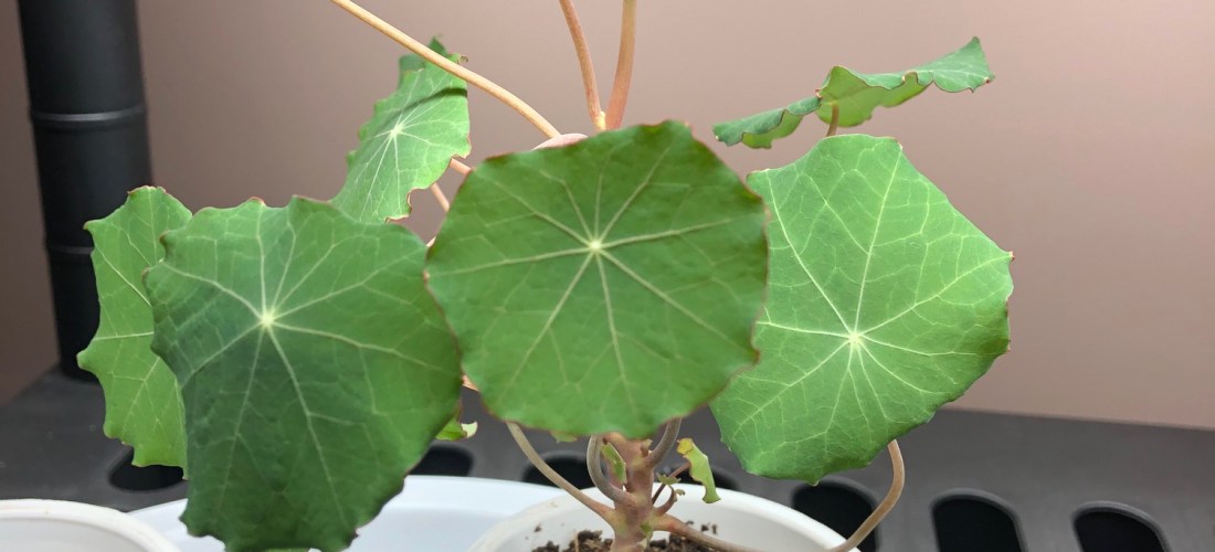 And, occasionally I get distracted by shiny things like a cat after an orb of light reflecting from a piece of glass. For instance, I recently sowed the all too common Nasturtium because, well, they’re pretty. But subconsciously, I may have decided to sow them because they “grow before your eyes”. What else would be as fun to watch unfurl in green splendor in the middle of winter? The best part is that when the round peppery leaves start to stretch out of control, I get a snack. You might think that there are better things to munch on, but I have seen this plant used in “serious” restaurants as both garnish and salad ingredient.