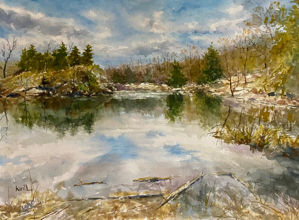 A cold, possibly windy scene, yet well-lit enough to include some warmth. the hills far off in the distance are catching light too for further illumination and interest. But dark shadows lurk in the foreground to suggest there is more going on here than meets the eye. The sky; stormy, but will it snow or rain or will we have wind gusts strong enough to knock over a backyard swing-set? Who knows, but hopefully you’ve enjoyed this painting and that it caused you to feel warm, cold, concerned, or something else.