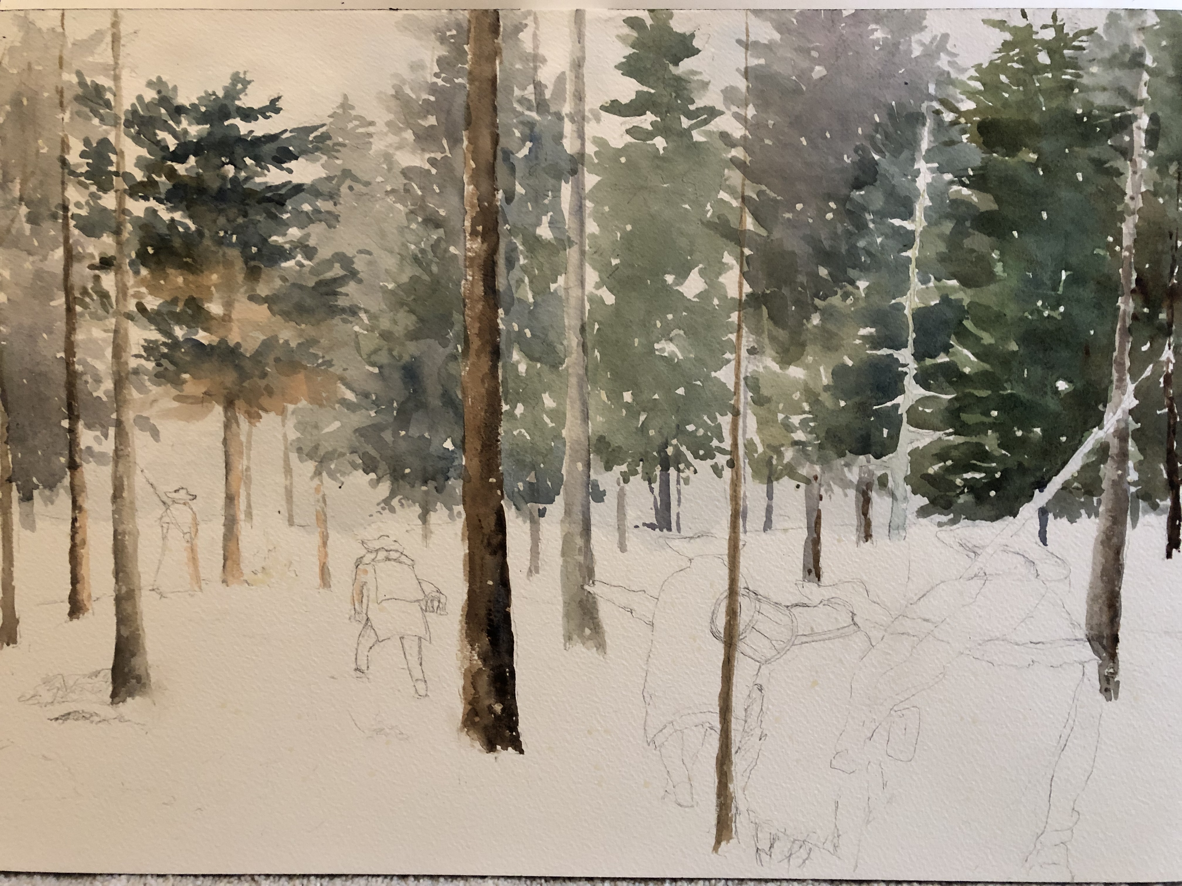 As a family, we love adventuring to Blooming Hill Farm. It is an organic farm located in South Blooming Grove, NY. Salad greens and root veggies are always available there in the middle of winter. The folks that run the place are the best! There are also these old rusty trucks laying around on the property. I’m not sure what the story is, but I’m pretty sure they don’t run anymore. One thing is for sure – they make an excellent subject matter for a watercolor painting!